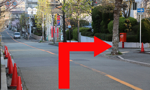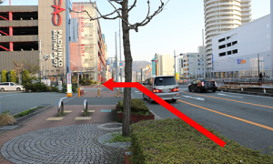 緑ヶ丘方面よりお越しの方はスギ薬局のある船場西3丁目の交差点を左折します。