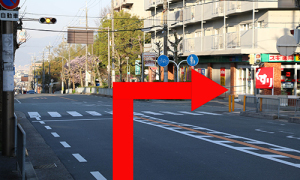 スギ薬局のある船場西3丁目の交差点を右折します。